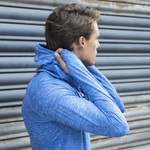 • Reflective tab on back of neck helps keep ear phone cords in place. Toggled hood.