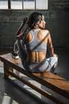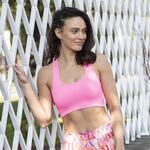 Women's seamless sports bra from sports brand Tombo with removable padded cups and racerback.
